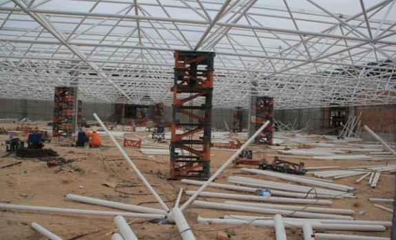 5)总体晋职法:此步履多使用在周边支护以及有多点支护的网架结构,可采取平板升降机、液压千斤顶等小型机具作业汉川施工;